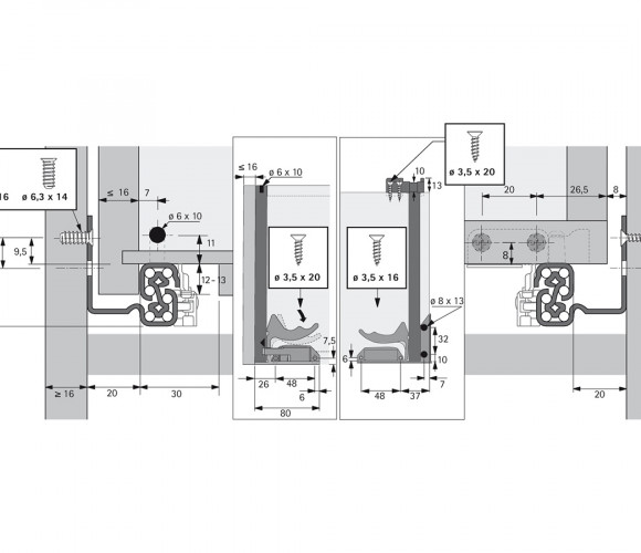 911135501 Quadro V6 30/550 Push to open, направляющая полного выдвижения, EB 20, левая