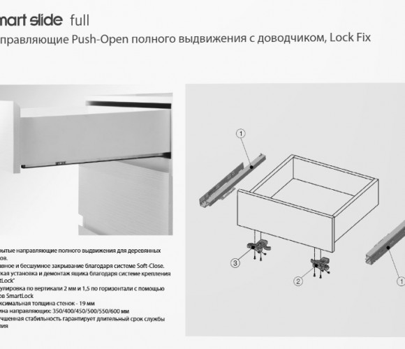 САМЕТ Напр. SMART SLIDE PUSH OPEN полного выдв. c довод., 400 мм, 127.230.304