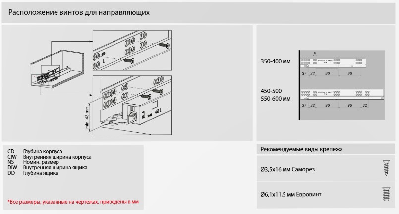 Динамическая нагрузка: 40 кгВозможность установки ящика с толщиной боковин до 19 мм