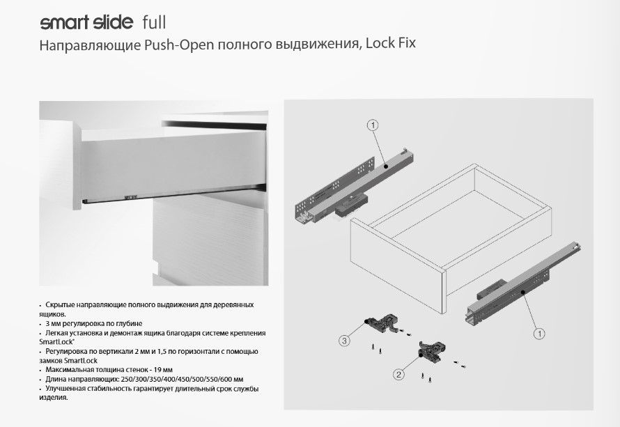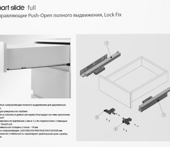 САМЕТ Напр. SMART SLIDE PUSH OPEN полного выдв. БЕЗ довод. 450 мм, 127.210.425