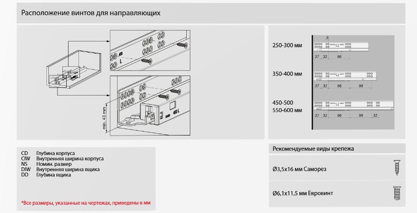 Скрытые направляющие полного выдвижения для деревянных ящиков