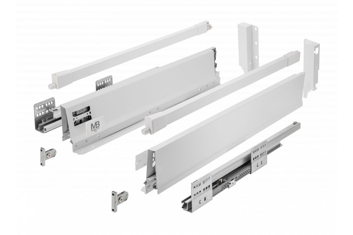 Модерн Бокс PRO L-350, средний H-135 мм, белый - мебельная система выдвижения, представляющая собой набор из направляющих, боковых стенок и рейлингов, для сборки выкатного ящика. Модерн Бокс в первую очередь предназначен для кухонных гарнитуров, но также может быть использован в мебельных конструкциях другого назначения, где конструктивно предусмотрены выдвижные ящики.
