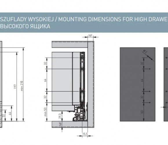 • Дополнительная регулировка наклона фасада: +/- 2 мм.