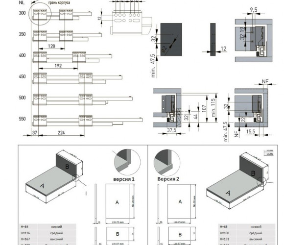 AXIS PRO L-450 мм, низкий H-86 мм, антрацит - система выдвижения нового поколения с повышенной эргономикой, для использования в кухонных гарнитурах и мебели для ванных комнат.