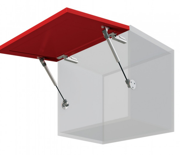 Лифт газовый (газовая пружина) для корпусной мебели. Сменный кронштейн под 32 мм и 16 мм. Кронштейны двух видов: для установки на фасады из массива дерева или ДСП и металлические рамы.