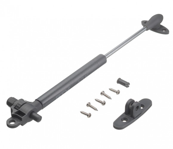 Подъёмник газовый с амортизатором 50N GTV, антрацит - мебельный подъемник, в конструкции которого предусмотрены доводчик и амортизатор. При правильной регулировке газлифта, в момент закрывании фасада исключается удар и сопутствующий ему шум.