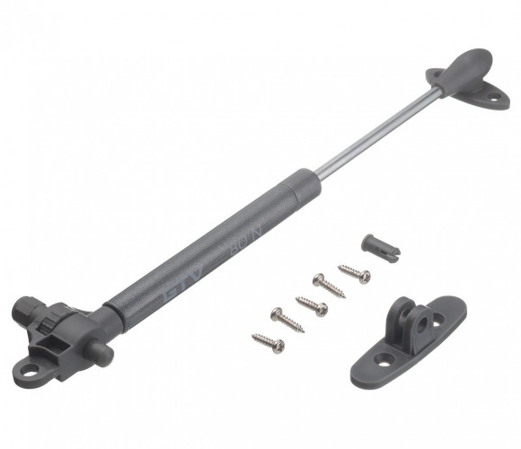Подъёмник газовый с амортизатором 80N GTV, антрацит - мебельный подъемник, в конструкции которого предусмотрены доводчик и амортизатор. При правильной регулировке газлифта, в момент закрывании фасада исключается удар и сопутствующий ему шум.