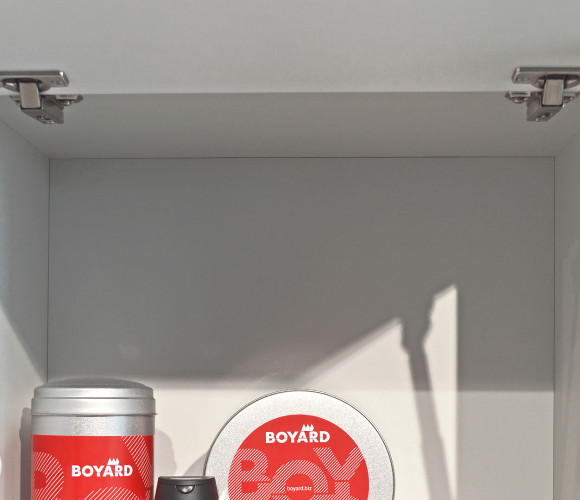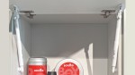 Лаконичный моно-дизайн, образуемый защитно-декоративным стальным чехлом, скрывает спицу газлифта. Белый цвет подходит большинству кухонь и хорошо сочетается с боковинами ящиков аналогичного цвета.
