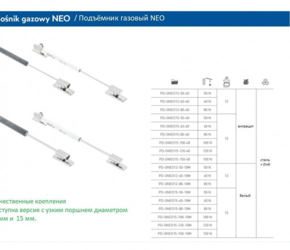 Газлифт 12 кг. NEO белый, диаметр 15мм