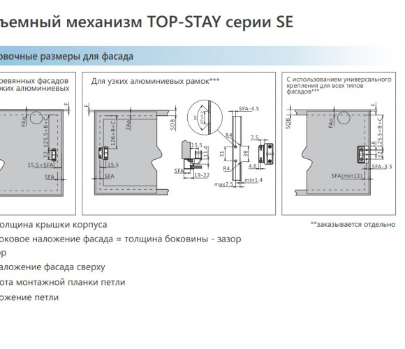 - Минимальная глубина фасада: 125 мм
