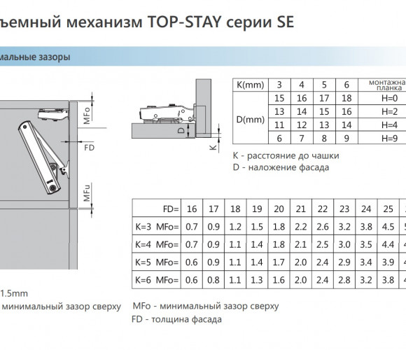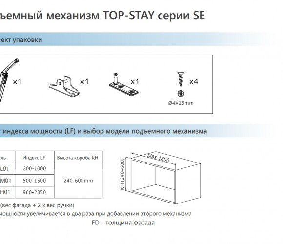 Диапазон индекса мощности LF для механизмов TOP-STAYS SE: