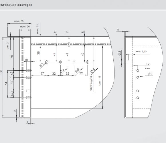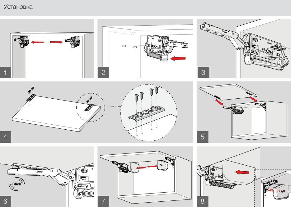 Для фасадов весом от 2,5 до 14,7 кг, шириной до 1200 мм и высотой от 200 до 600 мм
