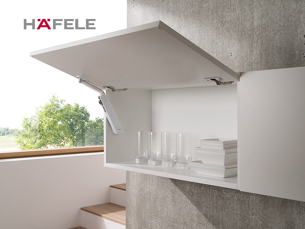 легантный подъёмник для шкафов с фасадом из древесины, стекла или алюминиевых рам.