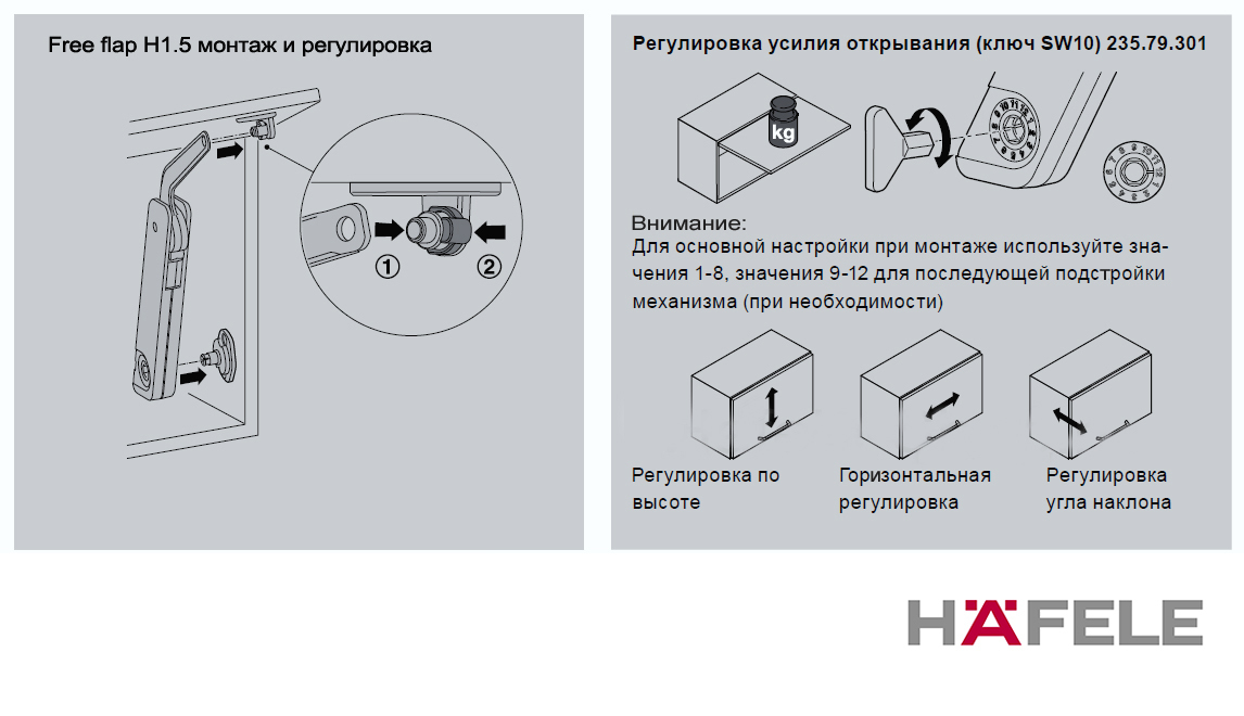 Легкий монтаж, регулировка в трех плоскостях, настройка под вес фасада.