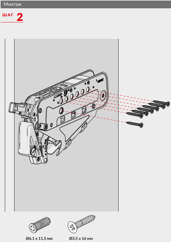 - Регулировка нижнего фасада: по высоте (+/-3 мм) – по ширине (+/-2 мм) – по глубине (+/-2 мм)