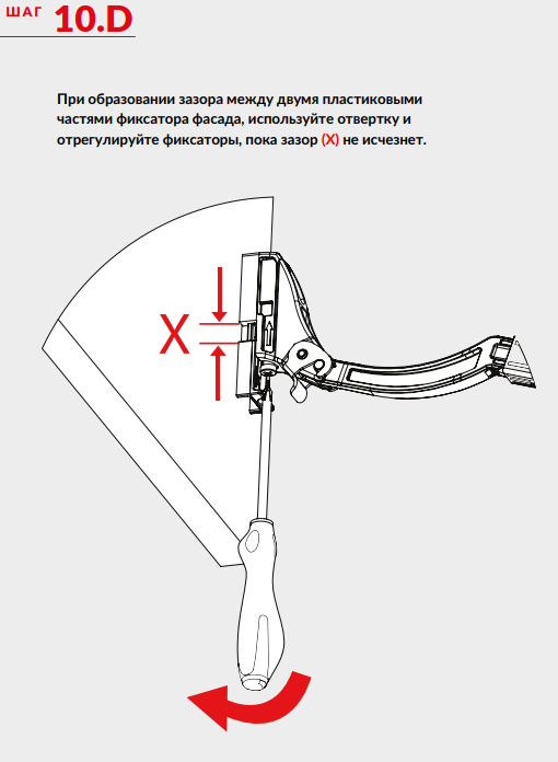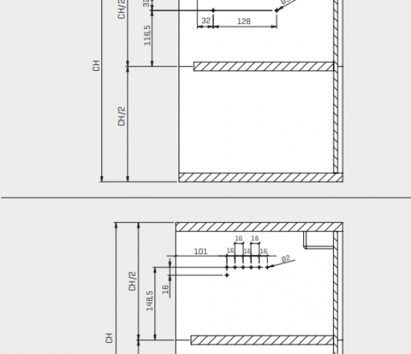 - Регулировка верхнего фасада: по высоте (+/-2 мм) – по ширине (+/-2 мм) – по глубине (+/-2 мм)