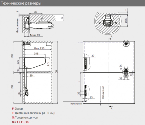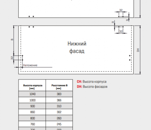 - Регулировка нижнего фасада: по высоте (+/-3 мм) – по ширине (+/-2 мм) – по глубине (+/-2 мм)