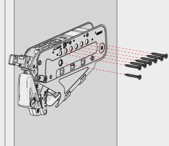 - Регулировка верхнего фасада: по высоте (+/-2 мм) – по ширине (+/-2 мм) – по глубине (+/-2 мм)