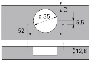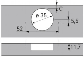 9071314 ПЕТЛЯ SENSYS 8675, УГОЛ 110ГР, ЧАШКА TH52D35, НА СРЕДНЮЮ СТЕНКУ(B3) (беспружинная)