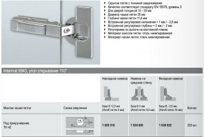 904287802 ПЕТЛЯ INTERMAT 9973, УГОЛ 110°, ЧАШКА TH42 O35, ВКЛАДНАЯ НАВЕСКА (беспружинная)
