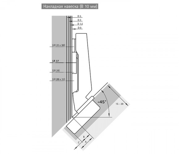 - Скрытая петля с техникой защелкивания с функцией самозакрывания