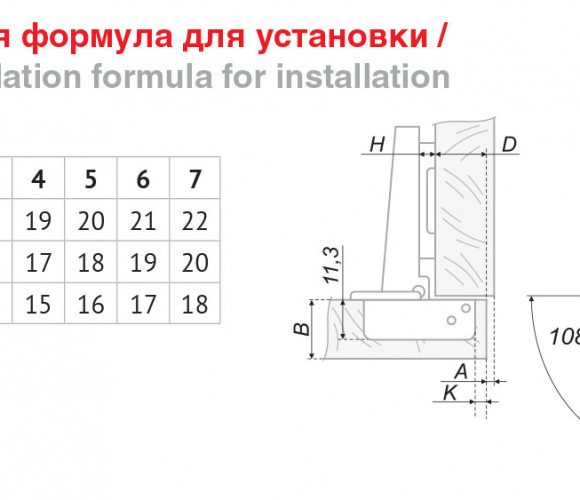 Угол открывания: 108°