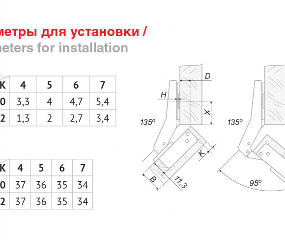 Угол установки: 135°