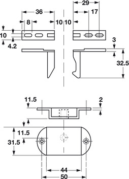 Автоматическая дверная блокировка. Для фиксации двух дверей. Функция дверной блокировки: Блокирует двойные двери при закрывании без дополнительной запорной планки или мебельной задвижки. Материал: цинковый сплав. Поверхность / цвет: никелированная. Монтаж дверной блокировки: Крючковая и клиновая части монтируются соответственно на правой или левой внутренней стороне двери. Сначала должна закрываться дверь с крючковой частью. Тогда при закрывании второй двери клиновая часть автоматически блокирует дверной запор. Дверь со смонтированной клиновой частью должна закрываться замком. Фиксация корпуса, крючковой части и клиновой части, - путём привинчивания шурупами.