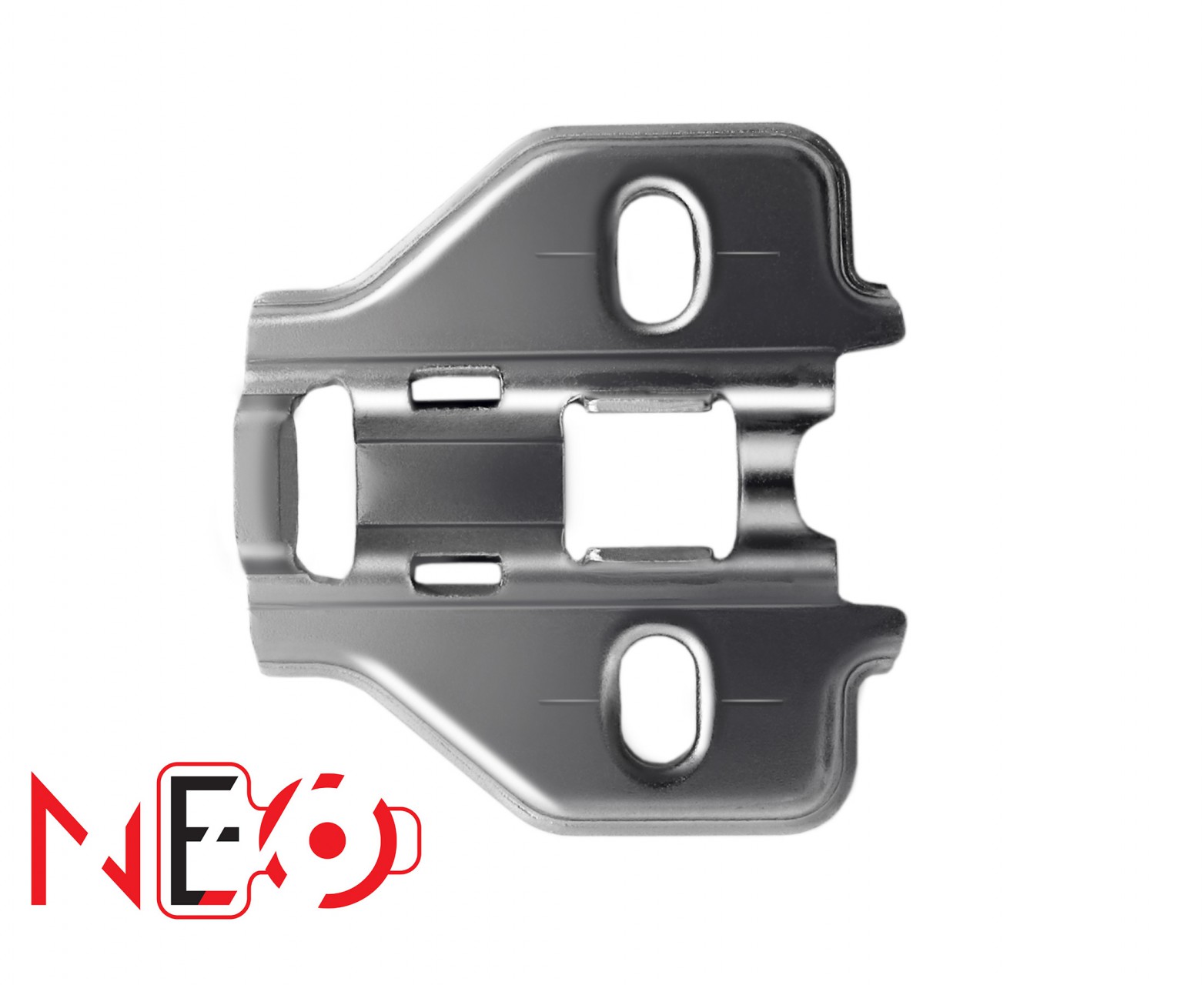 NEO H3010 – это базовая трапециевидная планка без эксцентрика, созданная специально для петель линейки NEO. Массивная форма планки обеспечивает более жесткое крепление петли к боковой стенке. Для крепежа можно использовать как евровинты, так и саморезы, которые приобретаются отдельно. Положение фасада по горизонтали/вертикали можно отрегулировать изменением положения планки: если она установлена с помощью евровинтов, регулировка возможна в диапазоне 4 мм, а с помощью саморезов – в диапазоне 5 мм.