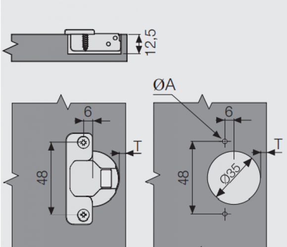 Регулировка петли по глубине +3/ -2 мм.