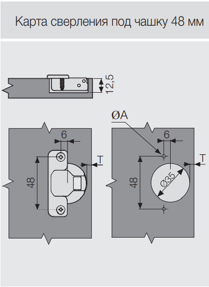 Расстояние фиксации чашки 48 мм.