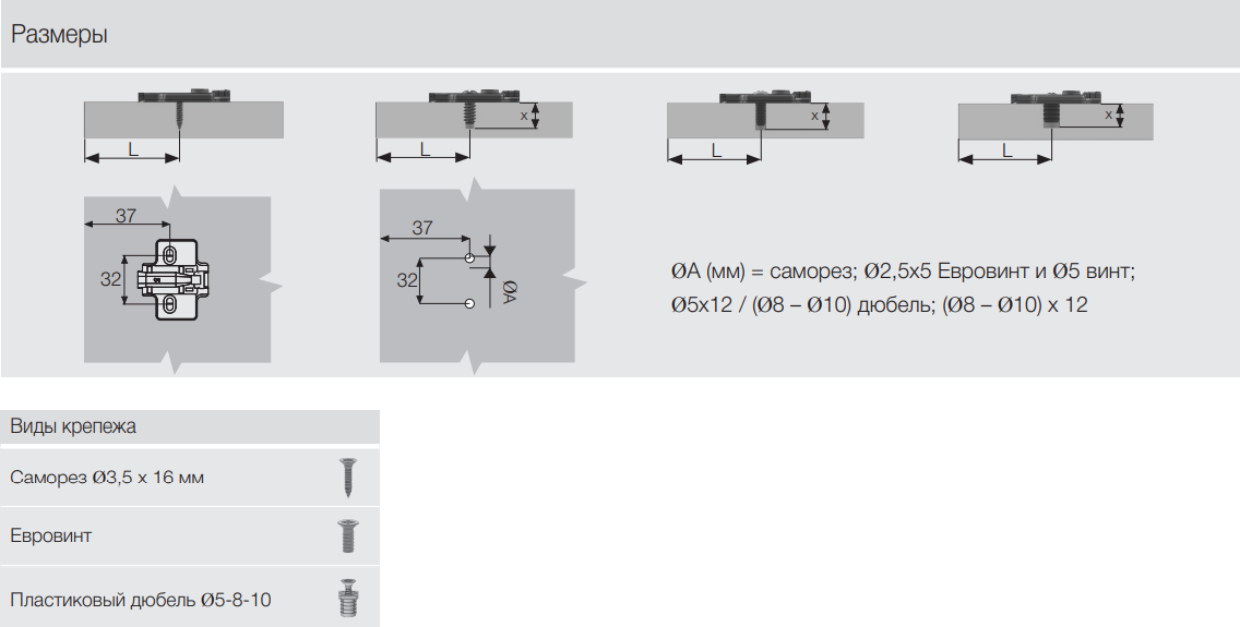 Монтажная планка Для петель Samet master