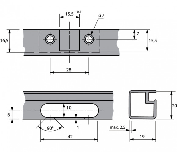 • Адаптер для дверей с алюминиевой рамой 19 мм