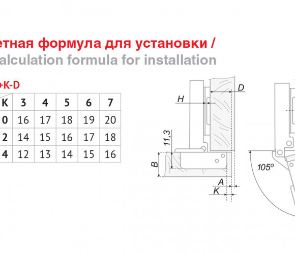 Угол открывания 105°