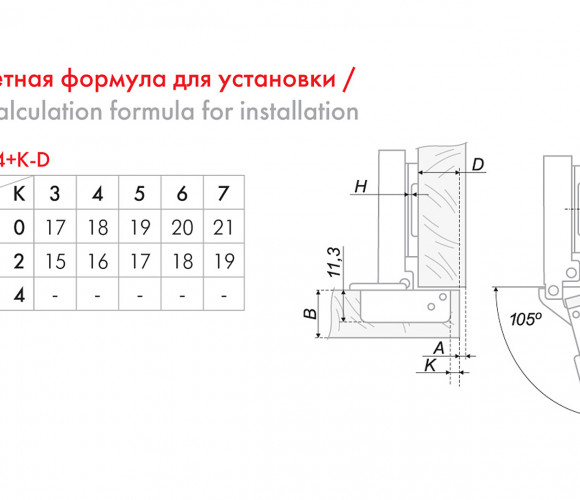 В ней есть все самое необходимое – удобный, быстрый и надежный монтаж, гарантированная долговечность, мягкая и оптимальная по скорости амортизация, встроенный в корпус масляный амортизатор. В данной модели не предусмотрена эксцентриковая регулировка. Для плавной регулировки фасада по глубине модуля требуется всего 3 действия – нужно ослабить крепежный винт, изменить положение корпуса петли и вновь зафиксировать крепежный винт. Петля H305 является одноходовой.