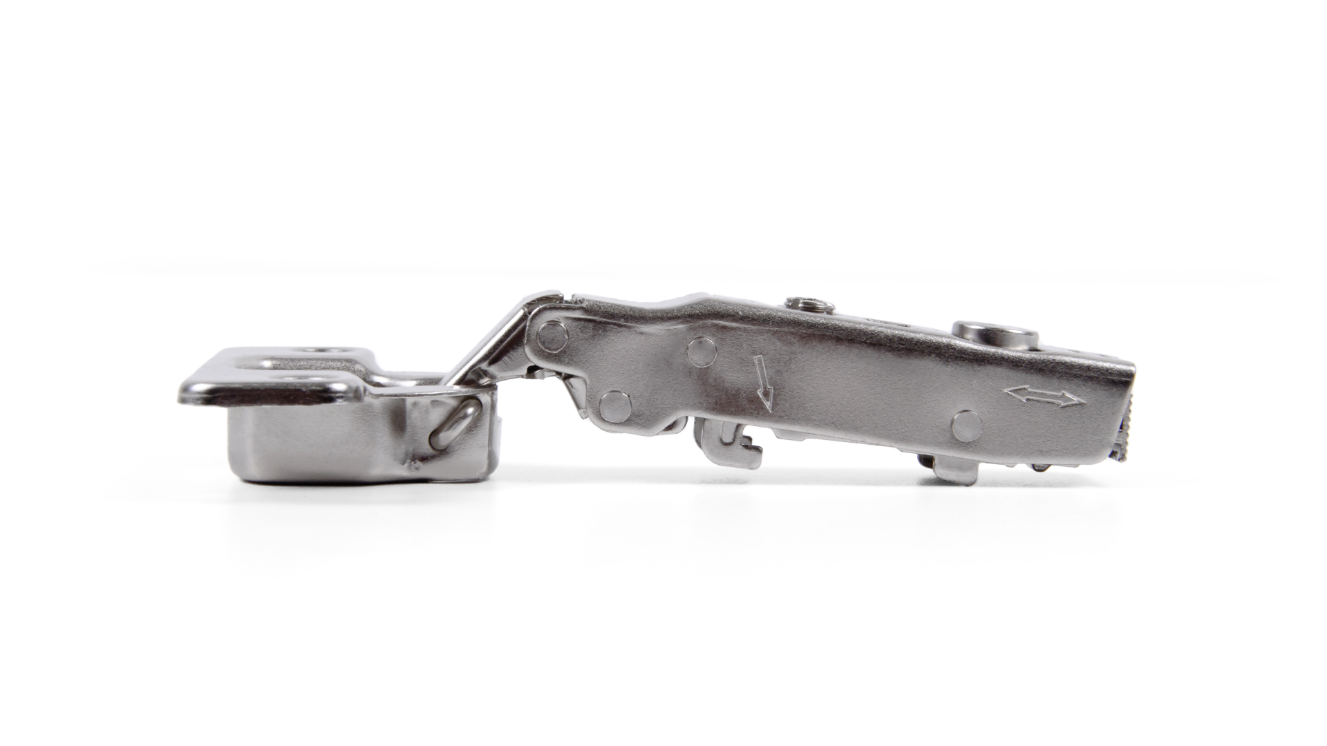 Модель имеет регулировку фасада в трёх плоскостях (по глубине, горизонтали и вертикали). Удобная регулировка по высоте и глубине в одно действие осуществляется при помощи эксцентрикового винта, встроенного в корпус петли. Регулировка фасада по горизонтали доступна при помощи винтов на планке.