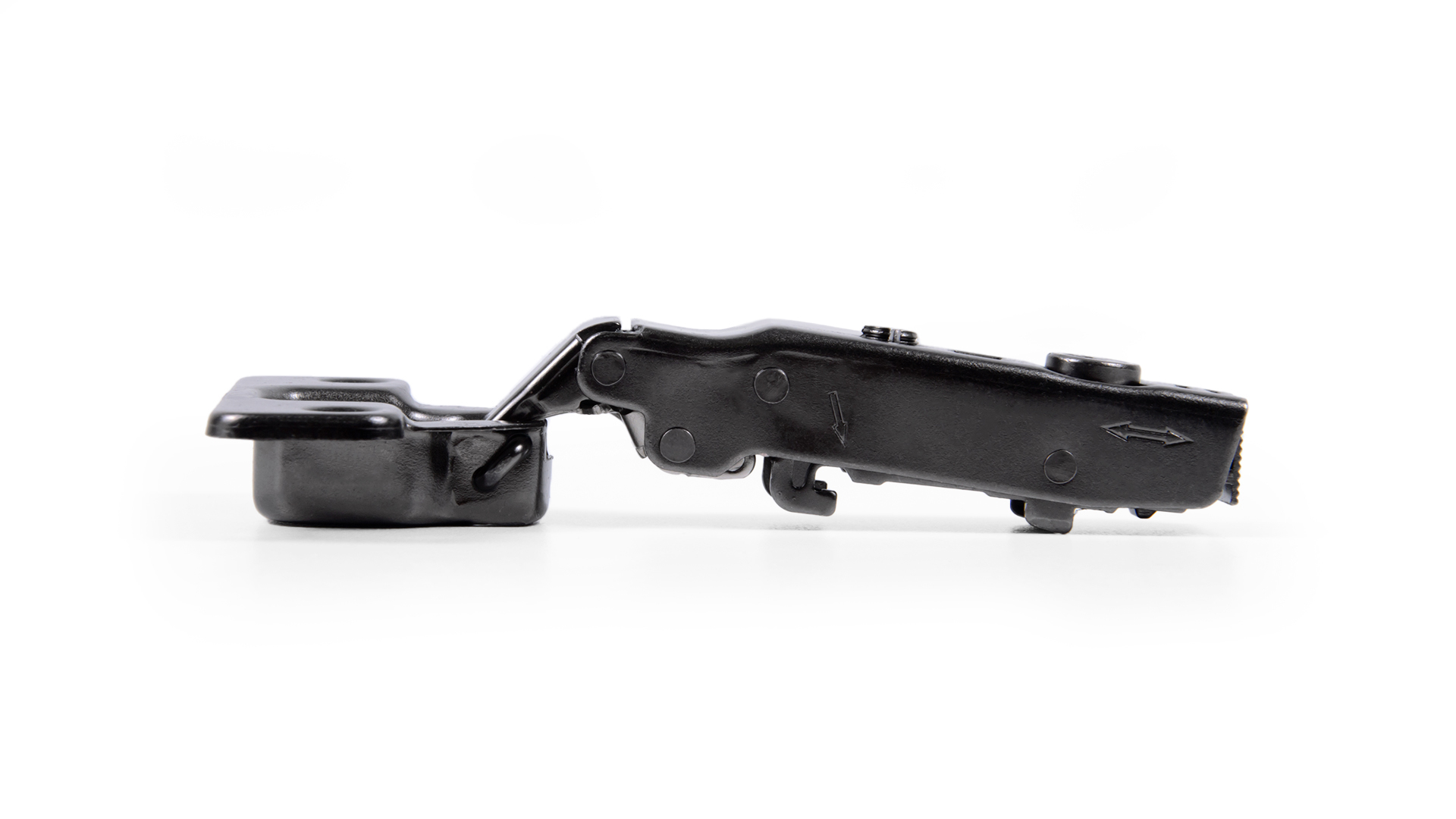 Модель имеет регулировку фасада в трёх плоскостях (по глубине, горизонтали и вертикали). Удобная регулировка по высоте и глубине в одно действие осуществляется при помощи эксцентрикового винта, встроенного в корпус петли. Регулировка фасада по горизонтали доступна при помощи винтов на планке.