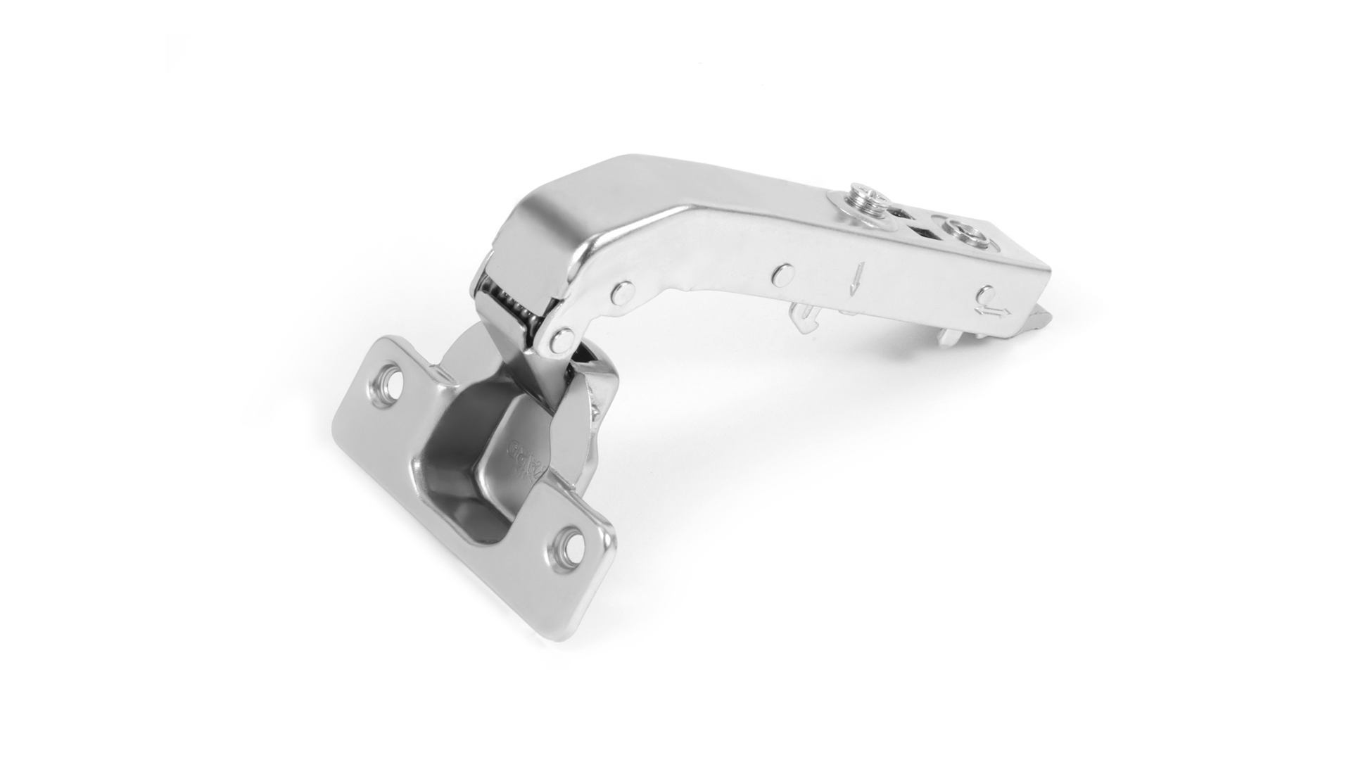 LINE 90 S H89002 — угловая петля из линейки EVO с амортизацией и 3D-регулировкой для фальшпанелей с углом установки 180°.