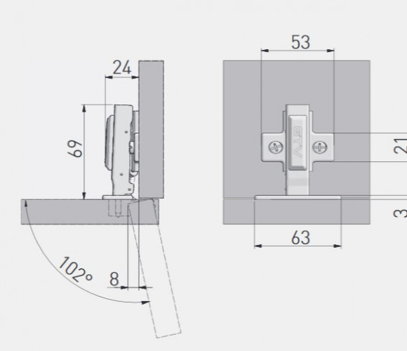 Петля GTV НС 09 накладная самозакрывающаяся с H-2 с евро - устройство, посредством которого фасад прикрепляется к корпусу мебельной конструкции и осуществляется открывание/закрывание дверцы.