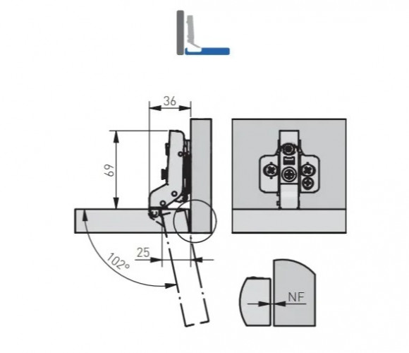 CLIP-ON: Быстрый монтаж. Корпус петли и ответная планка соединяются и рассоединяются без помощи инструментов, посредством защелкивания.