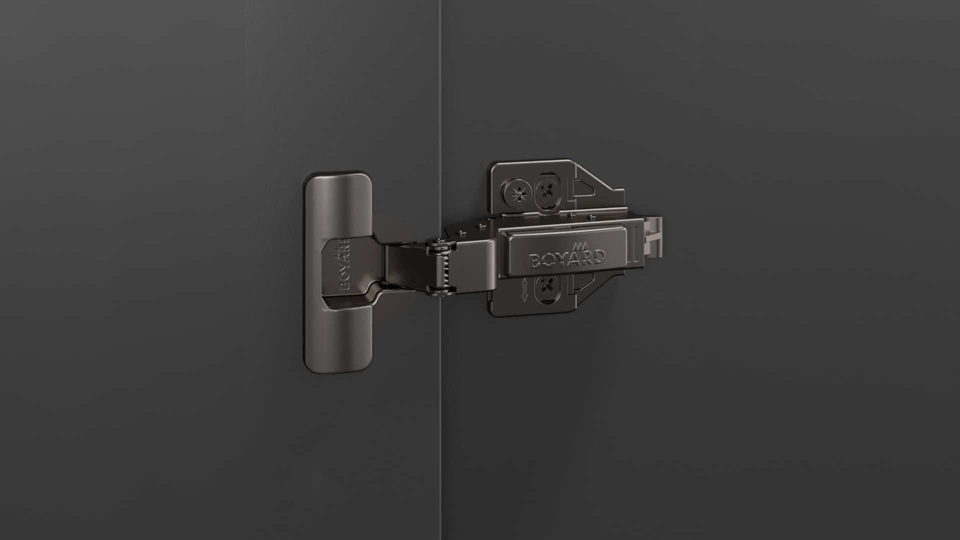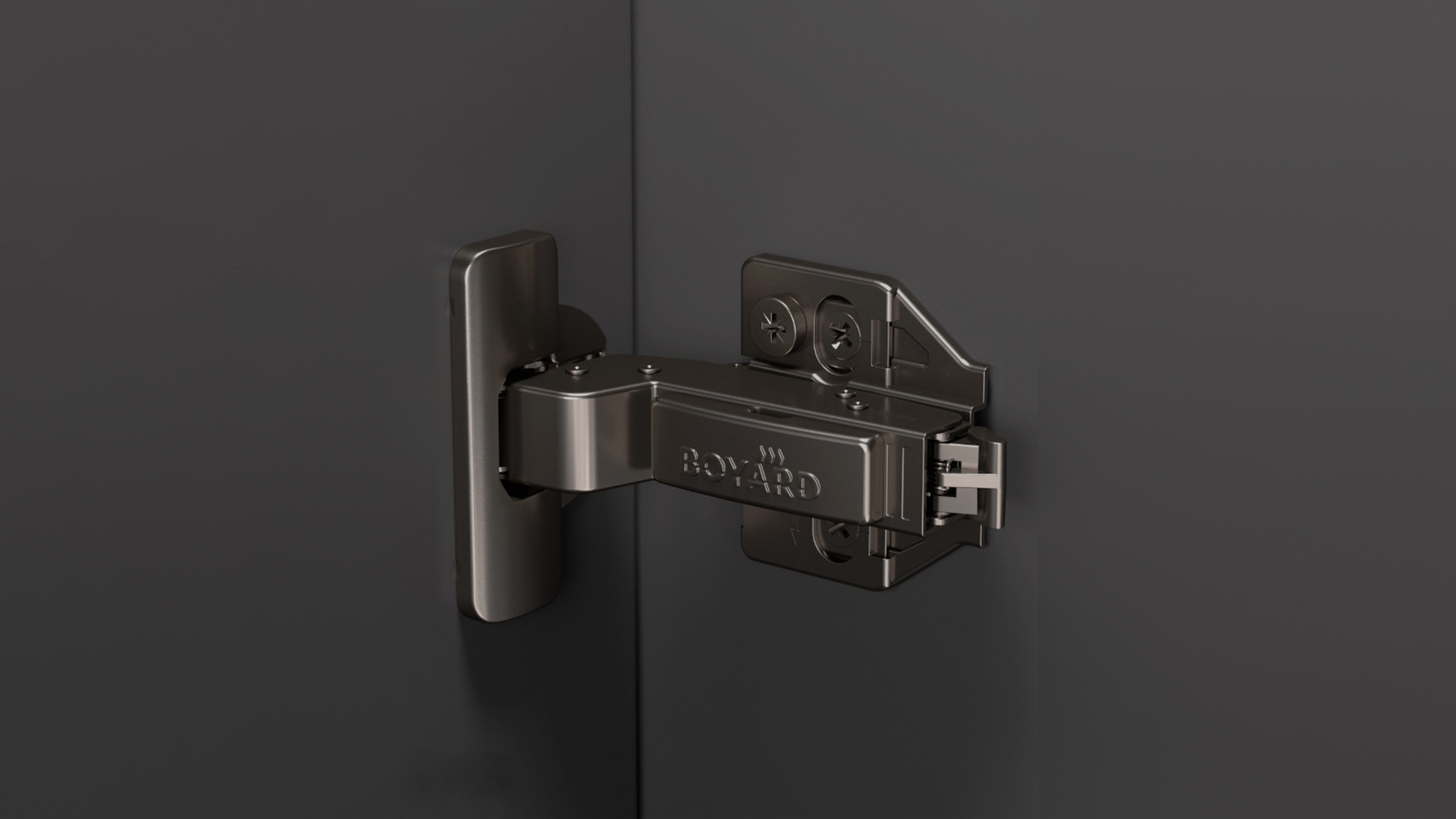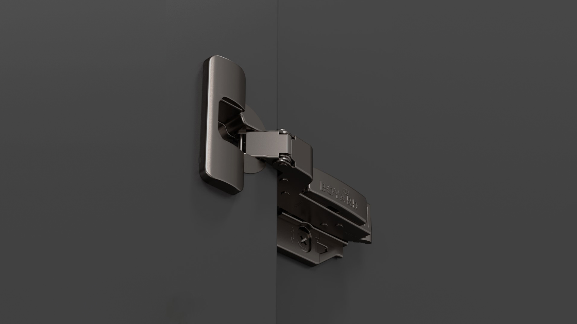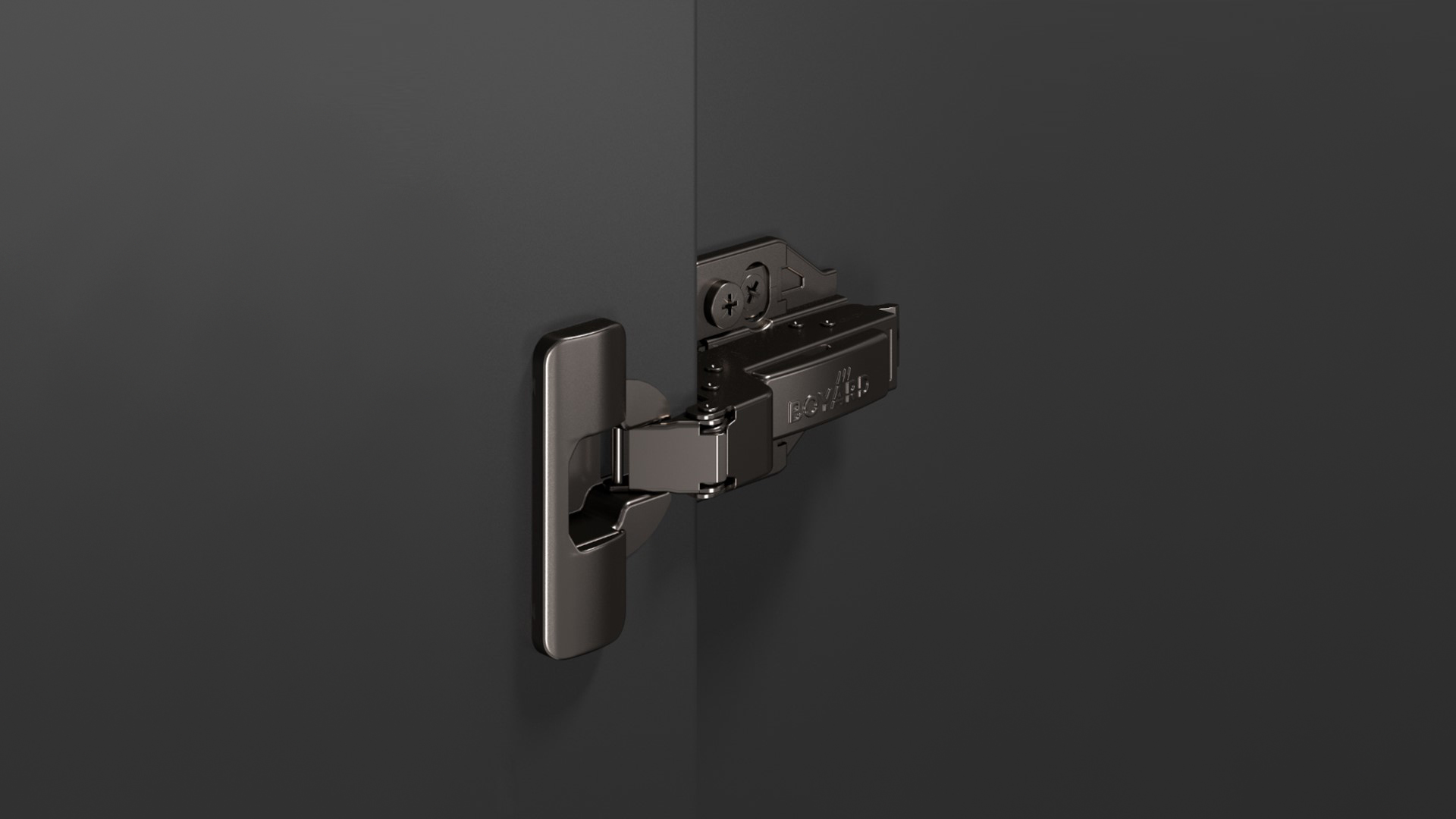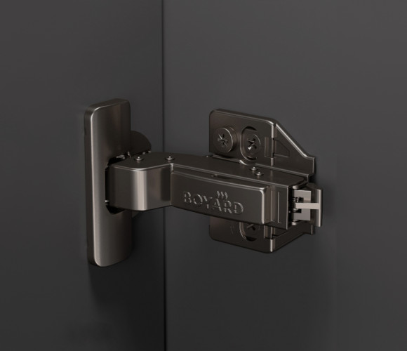 SYSTEM H801 — прогрессивная петля из линейки EVO с углом установки 90°, амортизацией и 3D-регулировкой для фасадов толщиной до 28 мм.