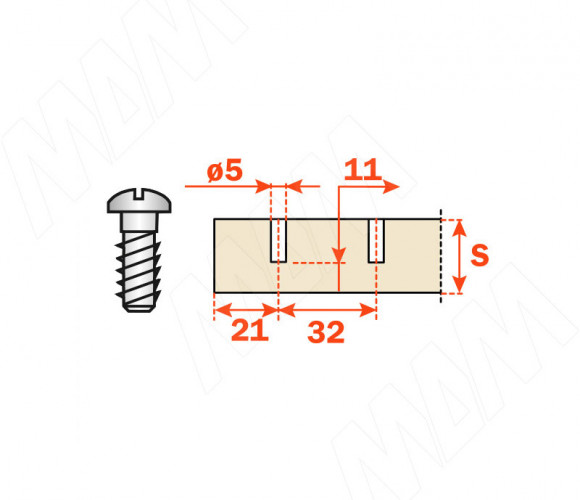 Монтажная планка Salice под евровинт, 3мм, линейная BAPGM39-16