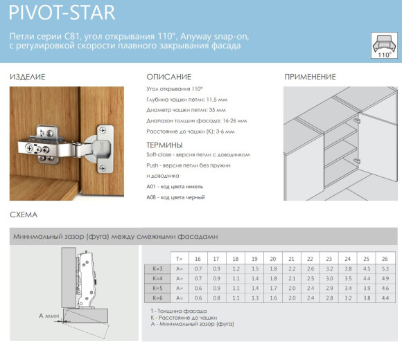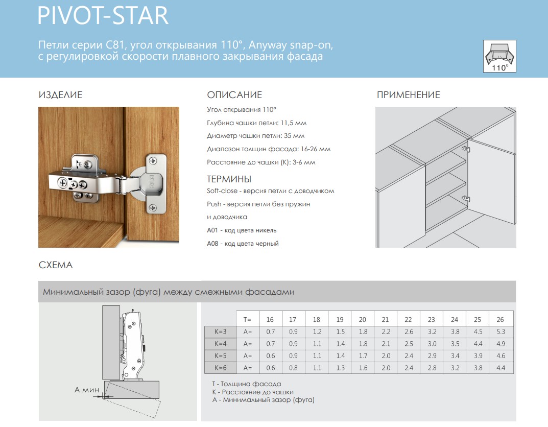 Петля DTC PIVOT-STAR new 110°, накладная, без пруж. (A81A875A) 0020171