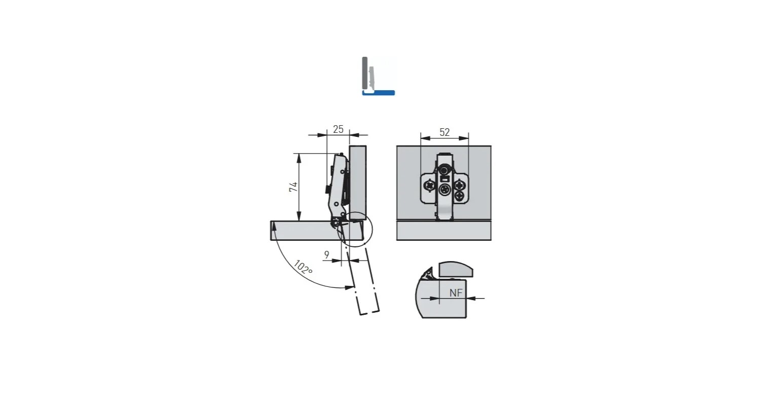 При установке накладных петель; в закрытом положении фасад полностью перекрывает торец боковины шкафа.