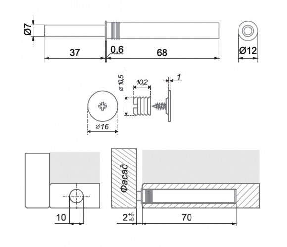 Магнитный толкатель Push-to-Open скрытого монтажа AMF15/GR Серый БОЯРД