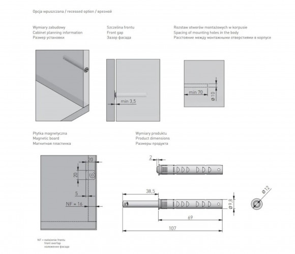 • Магнитный наконечник обеспечивает дополнительную фиксацию дверцы или ящика в закрытом состоянии.