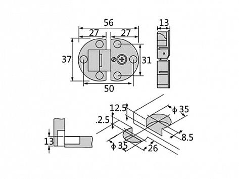 Предназначена для крепления дверей из ДСП, массива, ЛДСП