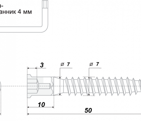 Конфирмат 7*50 с отверстием длин. загл. ST08/04/1/Zn/01