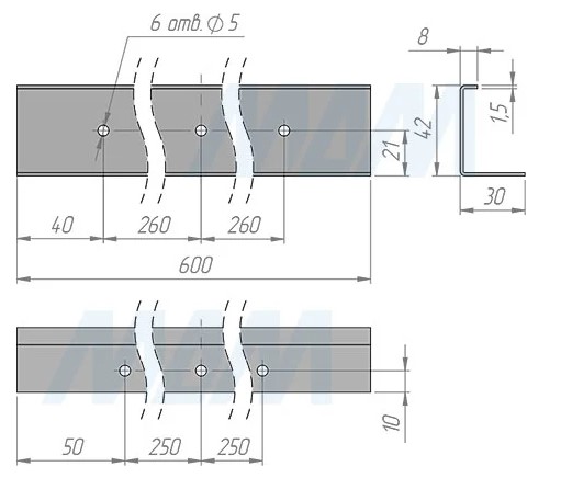Кронштейн для крепления столешницы к стене L=600 мм, черный ANG.01.600.BLC