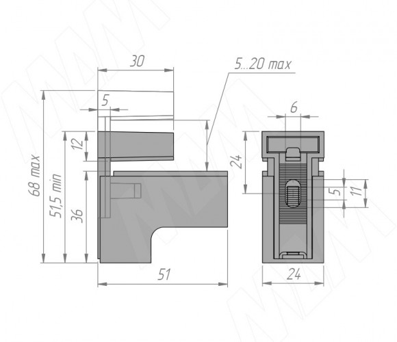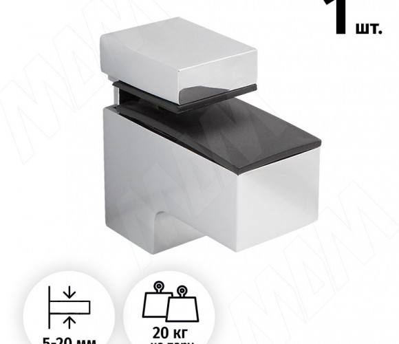 Менсолодержатель КВАДРО МИНИ 24х51мм для дерев. и стекл. полок 5-20мм, ХРОМ